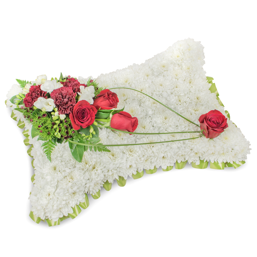 Celebrate the beauty of remembrance with our premium sympathy bouquet, a heartfelt tribute crafted to comfort and inspire. This stunning arrangement showcases the delicate allure of white chrysanthemums and white freesias, paired seamlessly with the passionate glow of red roses and the deep richness of dark red carnations. Complemented by the subtle elegance of dianthus and bear grass, every flower is hand-selected to ensure impeccable quality and lasting freshness.